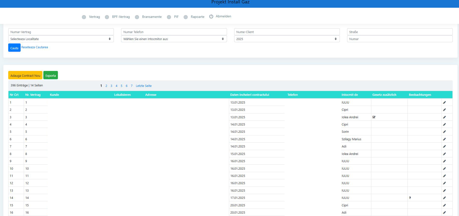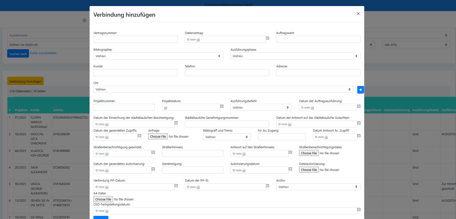 Unser Softwareprojekt wurde entwickelt, um die Aktivitäten eines Unternehmens zu optimieren und zu rationalisieren, das auf die Installation, Überholung und Überprüfung von Gassystemen spezialisiert ist. Die implementierte Lösung bietet ein integriertes System für die Verwaltung von Zeitplänen, Ausrüstungsaufzeichnungen und regelmäßigen Überprüfungen sowie für die automatische Erstellung von Berichten und technischen Unterlagen.